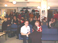 Taideaineiden laitoksen aulaan kokoontui kulttuurin etujoukko ottamaan vastaan... palkintouutisia.