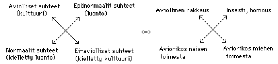 Kaavio 2. Bartonin käyttämä malli sukupuolisuhteille ja Schleiferin versio siitä.