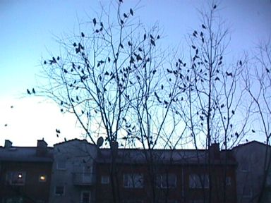 Illalla sää muuttuu kuin taikaiskusta, on 6 astetta pakkasta, mutta alkaa sataa vettä. Ehkä tämä olisi pitänyt aavistaa tilhiparvien kerääntymisestä auringonlaskun hetkellä?